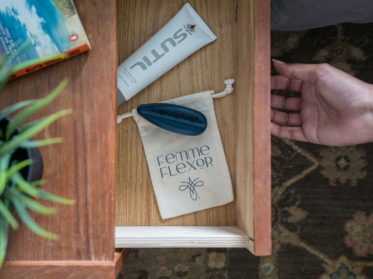 The Femme Flexor is a pelvic floor strengthening tool made with 100% body-safe platinum grade silicone. The Femme Flexor's unique patent-pending design aims at targeting the three layers of tissue in the vagina. When inserted into the vaginal canal, the Femme Flexor adds gentle resistance to pelvic floor strengthening exercises. Muscles get stronger over time by performing exercises regularly.